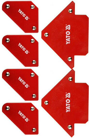 A Yato YT-08678 készlet egy hat darabos hegesztési mágneses derékszög készlet , amely a következő elemekből áll: 4 darab mini derékszög : Tartóerő: 4,5 kg Használható szögek: 45°, 90°, 135° Méretek: 43 x 72 x 12 mm 2 darab nagy derékszög : Tartóerő: 11,5 kg Használható szögek: 45°, 90°, 135° Méretek: 82 x 118 x 14 mm Felhasználási területek : Ez a készlet kifeje