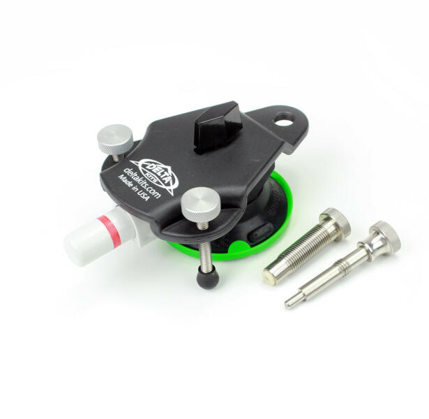 A Delta Kits rugós dugattyús befecskendező rendszere és a pumpás vákuumcsésze az injektort biztonságosan az üveghez tartja. A kompakt, 3 pontos kialakítás lehetővé teszi a függőleges, éles és ívelt üvegjavításokat extra rögzítés vagy speciális felszerelés nélkül. A hornyolt talp függőleges és vízszintes beállítást tesz lehetővé. Injektor szerelvény és digitá