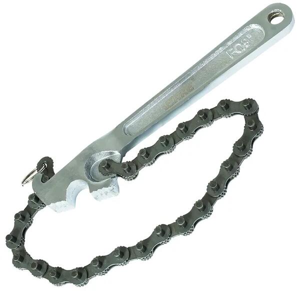 Termékjellemzők: ✅ Széleskörű alkalmazás: Olajszűrők, csövek és egyéb hengeres tárgyak szervizeléséhez✅ Állítható: 120 mm-ig terjedő munkatartomány✅ Erős: Tartós lánc és fém konstrukció✅ Kényelmes: Hosszú, ergonomikus markolat Műszaki adatok: Kulcs hossza: 220 mm Lánc hossza: 400 mm Munkatartomány: 120 mm-ig