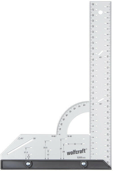 JELLEMZŐK: -Használható az iskolában, otthon és a műhelyben -Mérésre, munkára és rajzolásra -Lyukak a párhuzamos vonalakért -Körző mm-es pontossággal -Derékszög és párhuzamos rajzolás másodpercek alatt -Vezetőlemezként dekopír és körfűrészekhez -Szögmérő és rajzoló üzemmód -32mm-es beosztás polcokhoz és kivetőpánthoz -Mindkét oldala használható -Levehető