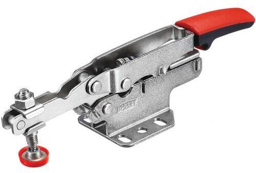 Függőleges csuklós bilincs nyitott karral és vízszintes szorítókarral. A szorítási magasság automatikus fokozatmentes állítása (35 mm-ig) szinte állandó szorítóerővel - a nyomócsavar beállítása nélkül. Állítható szorítóerő 2500 N-ig a kötésben lévő rögzítőcsavar beállításától függően. Kiváló minőségű, olajálló, kétkomponensű műanyag - csúszás