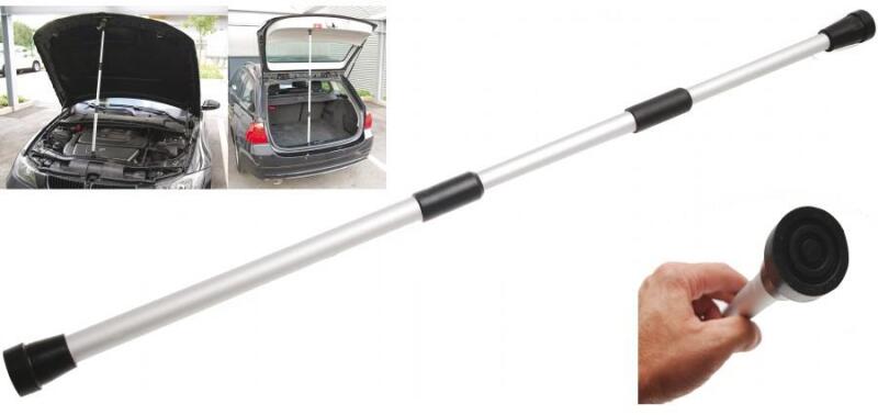 állítható 53 - 120 cm között könnyű a motorháztető és csomagtérfedő beállítása mert az alátámasztó sok helyzetben lezárható a teleszkópos rudazat forgatásával csak néhány centiméter további nyitás lehetséges a kényelmes munkahelyzet eléréséhez használható amikor az eredeti nyitó vagy ütközéscsillapító cserjére van szükség és miközben a gépkocsi kaross