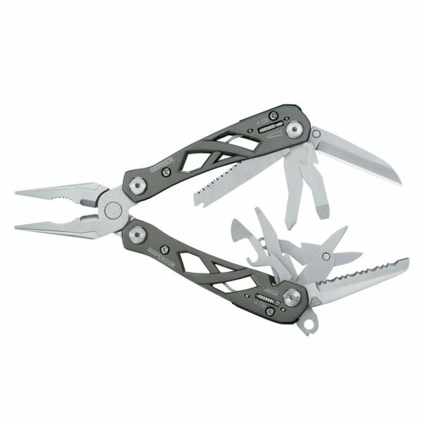 Gerber Suspension multifogó A kipróbált klasszikus, mely nem okoz csalódást, a kényelem és a tartósság referencia eszköze. A könnyen kezelhető, két kézzel nyitható pillangó kialakítás a rugós kombinált fogóval és könnyű kerettel a hosszú napokat és a fáradt kezeket szolgálja. A nyitott állapotban 17 cm, összecsukva mindössze 10 cm-es kombinált szerszám 12 funkciój