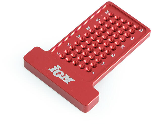 Kicsi, kompakt jelölő vonalzó párhuzamos vonalak a munkadarab szélétől 5-60 mm-re történő rajzolásához. Kis méretének köszönhetően akár zsebben is elfér. Használatához helyezze a ceruzát a megfelelő lyukba, majd egyszerűen vonalzó mozgatásával rajzoljon párhuzamos vonalat. Minden lyuk 1 mm-t jelent. Alumíniumötvözetből készült, melynek köszönhetően korrózió-