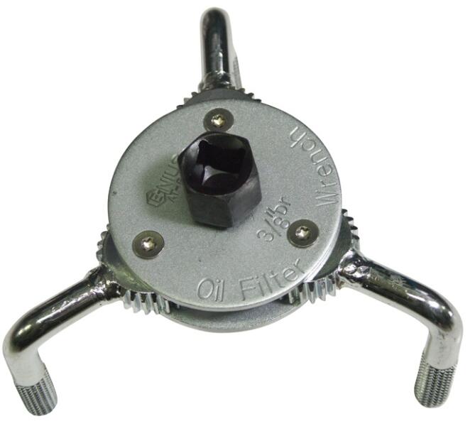 3-körmös olajszűrő leszedő 75 - 125 mm -ig. Csatlakozás: 3/8" Gyári tartozék egy 1/2" -ról 3/8" -ra alakító fej, így 1/2"-os csatlakozással is lehet hajtani. Anyaga: Chrome-Vanadium acél Húzásra és lazításra is használható. Súly: 0,61 kg