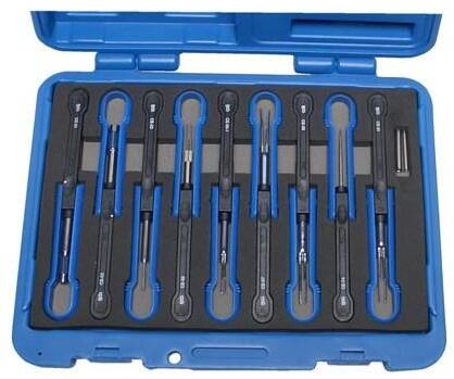vezetékek eltávolításához a végső csatlakozóból rongálódás nélkül kerek és lapos vezetékvéghez speciális készlet VAG járművekhez a védőfedő megelőzi a pengék rongálódását alkalmas sok csatlakozóhoz a következő járművekben: BMW Daimler Chrysler Fiat Ford Honda Jaguár Opel Mazda Mercedes Benz Mitsubishi Porsche PSA Renault Saab Toyota Volvo VAG kerek érintkezőh