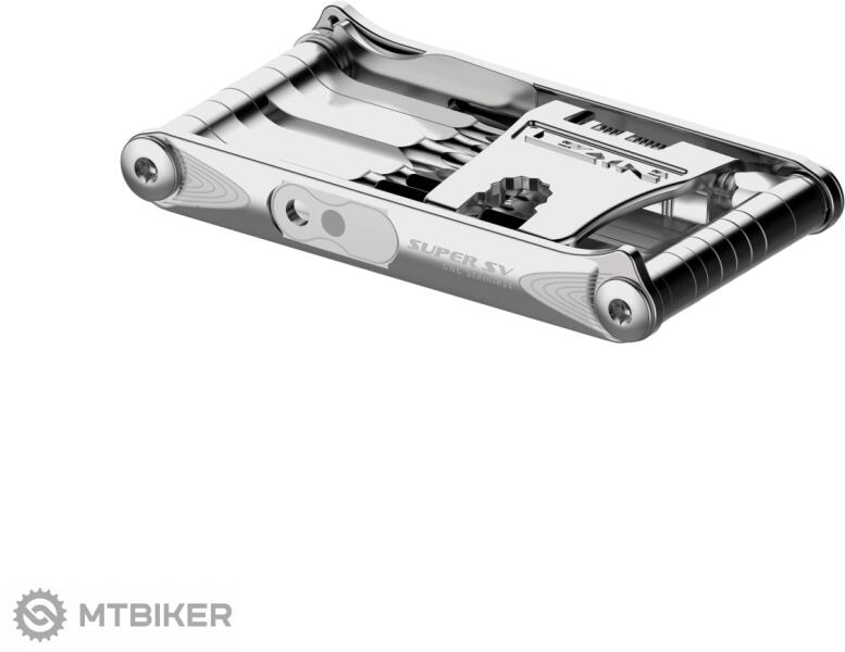 Lezyne SUPER SV22 többgombos Praktikus többfunkciós szerszám univerzális, alacsony profilú, nagy teljesítményű, könnyű kialakítással. . Funkciók Imbuszkulcsok: 2 / 2,5 / 3 / 4 / 5 / 6 mm torx: T10 / T25 / T30 Phillips csavarhúzó láncszegecselő oldalsó kulcsok: 8 / 10 mm központosító kulcs: SW-0 (3,2 mm) / SW-1 (3,3 mm) / SW-2 (3,45 mm) / SW-3 (3,96 mm)