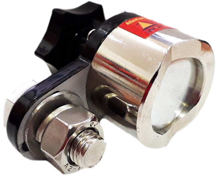 Mágneses hegesztési speciális test-csatlakozó, mágneses mező Ki- és Be-kapcsoló tekerő markolattal ellátva. Tulajdonságok: - 300 Amperes tartományban üzemel - Nagy teljesítményű mágneses korong - 80°C-os tartományig használható, az alkatrész meghibásodásának elkerülése érdekében. Méretek: - Henger magassága: 30 mm - Henger átmérő: 40 mm - Teljes szélesség: 66 mm