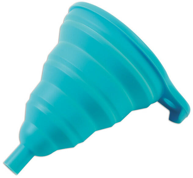 Praktikus, összehajtható (összecsukható) 10 cm-es tölcsér, speciális rugalmas szilikon anyagból. Extra lapos, kis helyen is elfér az összecsukható kialakításnak köszönhetően. Kis helyigénye miatt ideális pl. a motorkerékpárok ülés alatti tárolóban történő elhelyezésére is. Az alábbi anyagokhoz használható: olaj, benzin, gázolaj, fékolaj, hajtóműolaj, fagyálló,