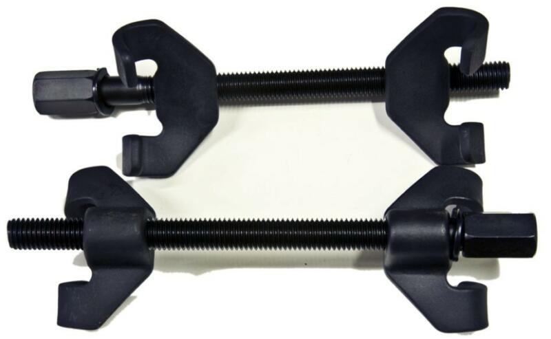 A készlet 2db duplakampós csavarorsós rugóösszehúzóból áll. Alkalmas spirálrugók összenyomására. Ideális a használata a kerékdob mögötti szűk helyeken. Befogási magasság: max. 370mmMenetes szár hossza: 360mmMeghajtás: 1/2" négyszög, vagy 22-es kulcsCsomagolás: 375x90x70mm-es kartondoboz