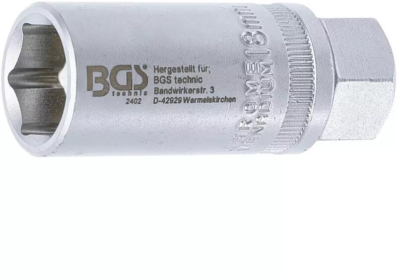 Fejméret: 18 mm Fejtípus: hatszögű Befogás: 1/2" négyszög Külső átmérő: 26 mm Súly: 156 g Hossz: 65 mm Anyaga: CrV Felülete: Krómozott