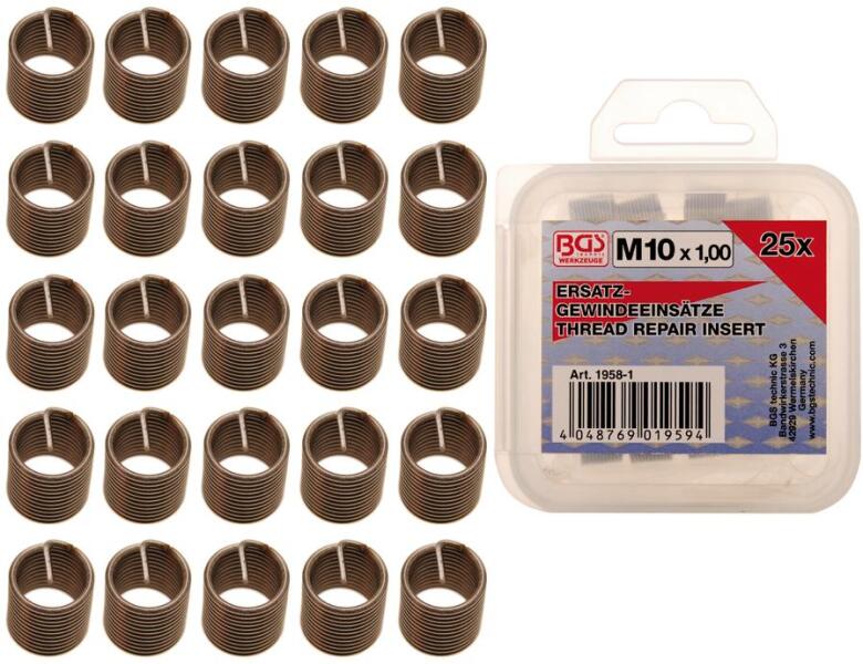 Tartalék menetes betétek a BGS 1958 menetjavító-készlethez Menete melkedéshez: M10 x 1,0 Bruttó súly: 70 g