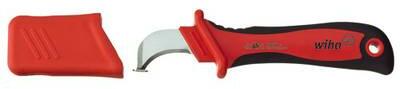 Csupaszolókés kerek kábelekhez Vastagabb kábeltípusok csupaszolásához és a különbözőképpen elhelyezkedő, többszörös szigetelésű kábelek felbontásához. Max. 1000 V AC feszültség alatt álló részeken végzett munkákhoz. Kivitel: stabil, rögzített és sarlóalakú kampós penge. A saruformájú csúcs behatárolja a vágási mélységet és megakadályozza a vezeték sér