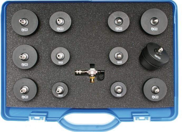 segít a szivárgás helyének meghatározásához a turbófeltöltő rendszer összetevőinél mint a nyomóvezeték levegő-levegő közbenső hűtő stb. az ellenőrzés a motor leállított állapotában eredményes és ad szakszerű és gazdaságos diagnózist beleértve: nyomásszabályzó az ellenőrző nyomás optimumának biztosításához ellenőrző adapter bayonet zárral Ø 31-38-46-5