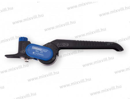 Termék részletekA No. 25 kábelcsupaszoló leginkább a vastagabb, akár 5mm vastag szigeteléssel, köpennyel rendelkező kábelek biztonságos csupaszolására alkalmas. Így kiváló a nagyfeszültségű vezetékek blankolására, max. 25mm átmérőig. A beállítócsavar segítségével a vágókés a kábelköpeny vastagságának függvényében megfelelőre állítható. A szerszám körkörös és hosszan