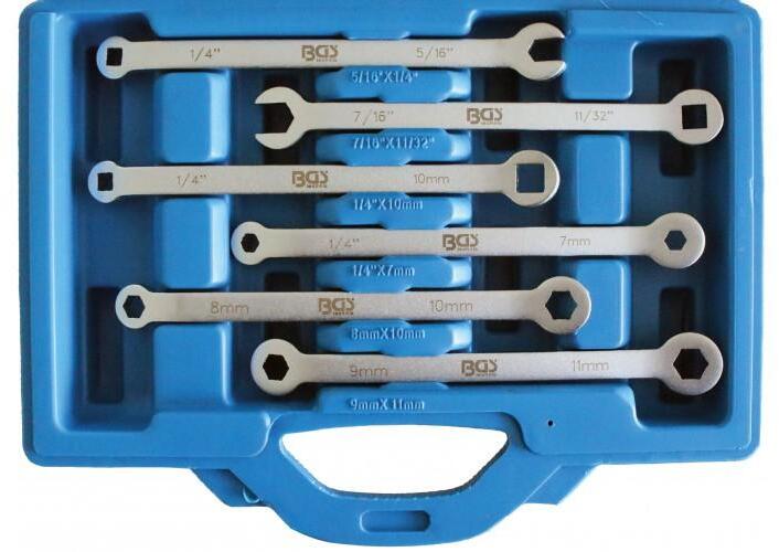 kovácsolt és króm bevonatú méretek: 1/4" négyzet x 5/16" nyitott végű 1/4" négyzet x 10 mm hégyzet 9 mm hatszög x 11 mm hatszög 8 mm hatszög x 10 mm hatszög 1/4" hatszög x 7 mm hatszög 7/16" nyitott végű x 11/32" négyzet