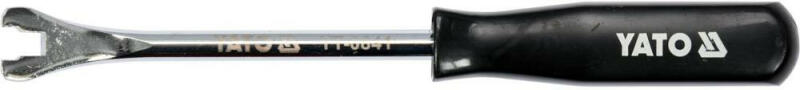 YATO YT-0841 Kárpitkiszedő Fogó, az ún villák a kárpitot rögzítő csapok eltávolításához. A kar lehetővé teszi a kárpitkapcsok könnyű szétszerelését anélkül, hogy megsérülnének. Csúszásgátló fogantyúval ellátva. Méretek: A fej átmérője: 13 mm felett. Hossz: 230 mm Szélesség: 18 mm Clipszár szélessége: 9 mm