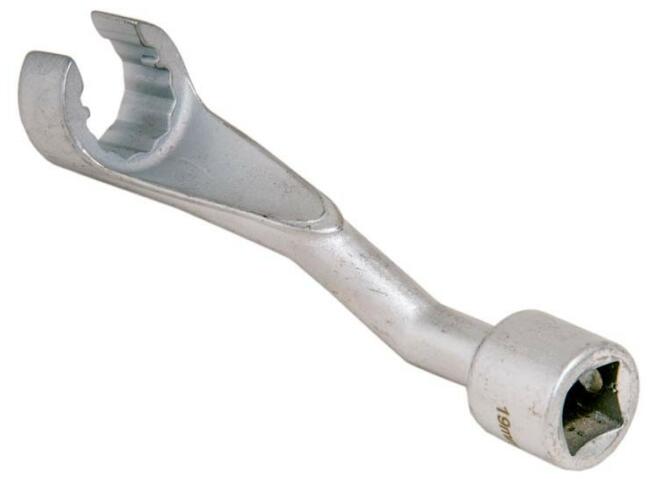Speciális 12-lapos dugókulcs a nagynyomású befecskendezők hollandereinek lazításához/meghúzásához. Nyitott, enyhén hajlított kialakításának köszönhetően könnyen hozzáfér a hollanderhez az üzemanyagcső leszerelése nélkül is. Elsősorban Diesel, Common Rail befecskendező-rendszerű motorokhoz használható. Fej: 19 mm Meghajtás: 1/2" Hossz: 120 mm Alkalmazhatóság Első