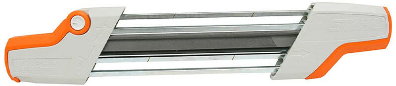 Praktikus segédeszköz a fogak élezéséhez és a mélységhatároló beállításához egy lépésben. Ideális alkalomszerű felhasználók számára. 1/4" P, 3/8" P, . 325" és 3/8" fűrészláncokhoz. Integrált reszelőkiegyenlítés (kizárólag a STIHL-től).