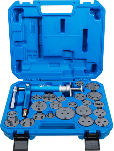 Univerzális készlet szinte minden személygépkocsi fékdugattyújának elfordításához és kinyomásához A fékdugattyúk légnyomással történő visszaállításához Kézi kar a forgatási funkcióhoz, alkalmas balos és jobbos forgatáshoz Kézifék funkcióval rendelkező féknyergekhez is használható Alkalmas a következő járművekhez: Alfa Romeo, Audi, Citroën, Fiat, Ford, GM Ho