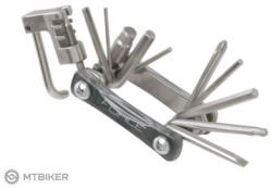 Szerszámkészlet 11 funkcióval és egy szegecselővel. A 11 funkciós többkulcsos csavarkulcs 7 x imbuszkulcsot, egy lapos és Phillips csavarhúzót, egy torx kulcsot és egy szegecselőt tartalmaz. A többkulcsot neoprén huzattal együtt szállítjuk. Hossz: 75 mm Szélesség: 45 mm Magasság: 25 mm Szín: ezüst Súly: 340 g Imbuszkulcsok: 2/2,5/3/4/5/6/8 Torx kulcs: T25 Csavarhúzó: Phill