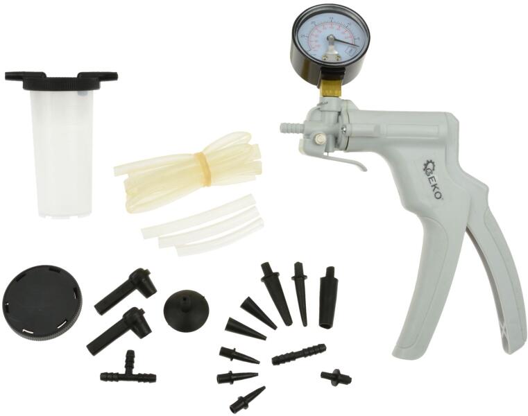 VÁKUUMPUMPA Manuális pumpa, amely fékrendszerek légtelenítésére és vákuum érzékelők, fékrásegítők, fojtószelepek, kipufogógáz-visszavezető szelepek, automata sebességváltókban lévő nyomás és hasonlók szabályzására. Megfelelő otthoni, de akár professzionális műhyelekbe is. A pumpa 0 és -1 bár közötti nyomást hoz létre. Manométert is tartalmaz, amelynek mé