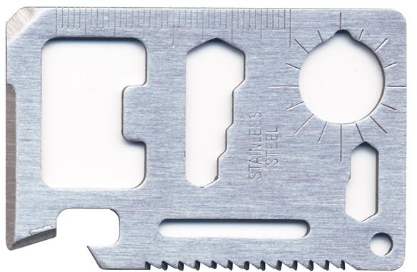 Funkciók: 1. konzervnyitó, 2. penge 3. lapos csavarhúzó, 4. vonalzó, 5. sörnyitó, 6. 4 különböző méretű villáskulcs csavarokhoz és anyákhoz, 7. szárnyas anyákhoz való nyílás, 8. Fűrész, 9. Égtáj-iránypozícionáló térképolvasáshoz, 10. kettő, kisebb méretű villáskulcs, 11. nyakpánt lyuk (kulcstartó lyuk)