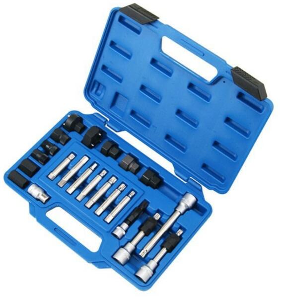Ez a kombinált készlet egy sor speciális bitet és dugókulcsot tartalmaz, amelyek szükségesek a generátor szabadonfutó tárcsáinak eltávolításához, és cseréjéhez. A készlet lehetővé teszi, hogy a generátor a tengelyen maradhasson, amíg a tárcsa rögzítőt eltávolítjuk. Ez a 22 darabos készlet olyan adaptereket tartalmaz, amely illeszkedik a leggyakoribb gyártók generát