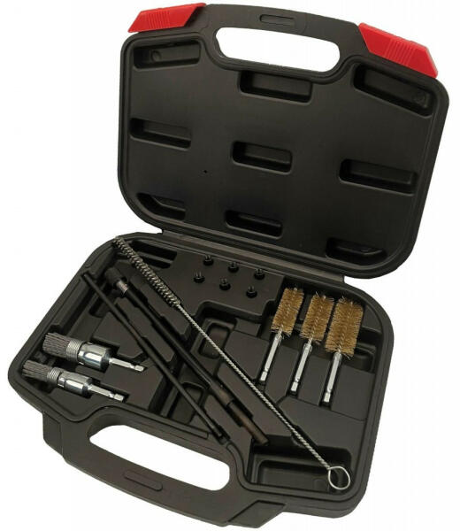 A hengerfejekben és az injektor-ülékekben lévő befecskendező nyílások hatékony tisztításához. Alkalmas járművek széles skálájához. Segít elkerülni a rosszul elhelyezett injektorok miatti visszafújást. A készlet tartalma: 3 db acél drótkefe, sárgaréz bevonatú. Égési maradványok eltávolítására a befecskendező nyílásokon. 2 db szilikon nylon kefe a hengerfejben l