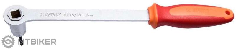 A kazettás fogantyús csavarkulcsot a Shimano®, SRAM®, Sun Race®, Suntour® stb. A tömör fogantyú megkönnyíti a használatot, mivel nincs szükség további szerszámokra a szerszám megtartásához. A fogantyú kétkomponensű bevonata tökéletesen illeszkedik a kézbe, és kiváló fogást tesz lehetővé a kulcson.
