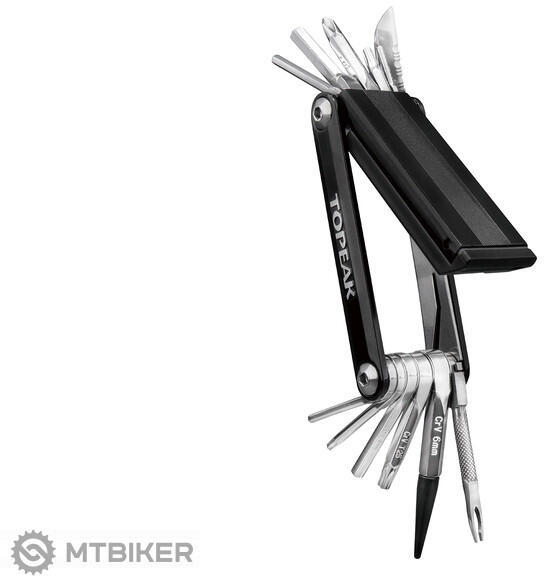 Professzionális minőségben készült, a legkompaktabb , 18 funkciós többkulcsos kulcs, amely a tömlő nélküli gumiabroncs hibáit is kijavítja . Imbuszkulcsok 2/2,5/3/4/5/6 mm T10/T25 torx kulcsok 2 x Phillips csavarhúzó rozsdamentes acél javító kanóc menetvágó furat érdesítővel fogazott pengéjű kés Tool Stop és Air Stop hosszabbítók (a hibák javításához) doboz javít