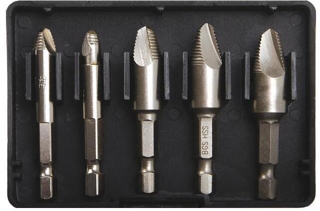 szénacélból minden tipusú kereszt- T-Star és belső hatszögű csavarhoz 5 különböző méretben villamos fúrógéppel működtethető max. 250/perc fordulattal