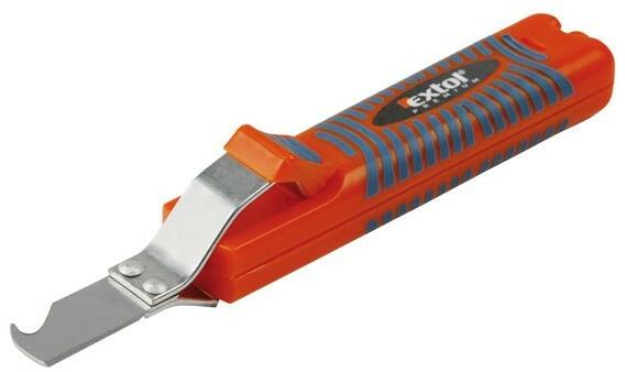 EXTOL PREMIUM kábel csupaszító (blankoló) kés, 8-28mm Leírás Mindkét oldalról csiszolt penge egyenes és hajlított éllel. A kábel csupaszító tűéle lehetővé teszi a kábelek hosszanti, illetve függőleges irányban történő könnyű vágását. Állítócsavar szolgál a vágás mélységének beállítására. Kétrétegű, lágy TPR csúszásgátló gumival ellátott markolat
