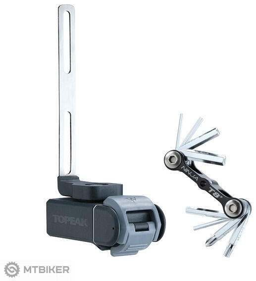 Egyszerű tartó a palackkosár alatt, rejtett beépített szerszámmal egy forgatható integrált dobozban. - Országúti kerékpárokhoz és kosarakhoz, amelyeknek az alsó nyílása és a kosár alsó széle közötti távolság legfeljebb 42 mm A NINJA 8+ többkulcsos kulcs alapvető edzett acélszerszámokat tartalmaz a sürgősségi kerékpárjavításhoz: - 2/2,5/3/4/5/6 mm hatlapú - csill