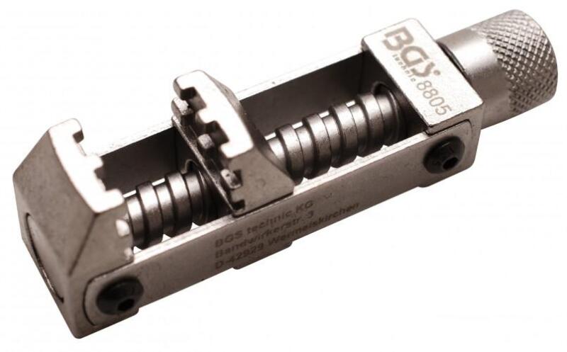 a rugóacélból készült csővezeték csőbilincs összenyomásához különösen hasznos szoros helyen recézett kerék az előfeszítéshez 3/8" meghajtás a racsnihoz hosszabbító szárhoz stb. a pofa kapacitása: 0 - 40 mm szénacél krómozott kivitel