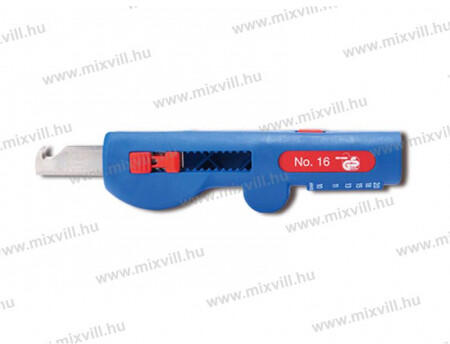 Termék részletekA WEICON No. 16 Quadro-csupaszoló zárható horgoskéssel ellátott, 8-13mm átmérőjű kör keresztmetszetű kábelek, vezetékek csupaszolására alkalmas, csupaszolási tartomány 0,5 - 6,0 mm2. A vágóélek NYM vezetékekre vannak kialakítv (3 x 1.5 mm2 - 5 x 2.5 mm2), nincs szükség a vágási mélység beállítására. Gyors, precíz és egyszerű használat a folyamatos munkavégzés