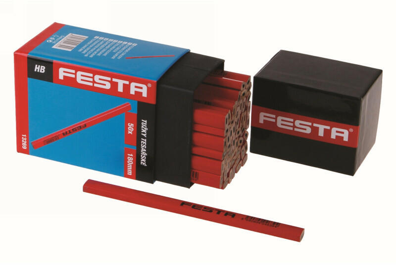 FESTA Ácsceruza 180 mm piros Ceruza klasszikus fekete HB grafittal - közepes keménységű, élezetlenfelhasználás - fa, építőipar