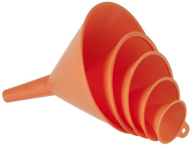 Tölcsérkészlet-polietilén, ∅ 50-75-100-120-150 mm Műszaki adatok Űrtartalom (l) 0,05 – 0,09 – 0,25 – 0,27 – 0,7 Anyag HDPE (nagysűrűségű polietilén) Szín narancs Magasság (mm) 180 Alapterület HxSZ (mm) 190 x 150 Súly (kg) 0,12 Fogantyús palack a kényelmes használathoz EAN kóddal Olaj-, sav- és üzemanyagálló Sokoldalú alkalmazási lehetőség ∅