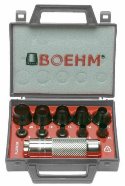 Precíziós köszörülésű lyukasztókések Késtartó akár 2 különböző méretű lyukasztókésnek Alkalmas gumihoz, bőrhöz, filchez, műanyaghoz, parafához, szövetekhez vagy hasonló anyagokhoz Praktikus szerszámkofferben Figyelem! Stancoláshoz alátétként használjon fát, bőrt vagy hasonló anyagot! Cikkszámméret (mm)belső ø (mm)külső ø (mm)típus azonosító041401-00013-
