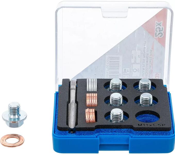 A Javítókészlet olajleeresztő csavarmenethez egy hasznos szerszámkészlet, amelyet a sérült olajleeresztő csavarok javítására terveztek. Ez a készlet lehetővé teszi a csavarmenetek helyreállítását, így megakadályozza az olajszivárgást és biztosítja a megfelelő tömítést. Specifikáció Méret: M11 x 1,5 mm méretű csavarmenetekhez Készlet tartalma 1 db menetfúró, HSS