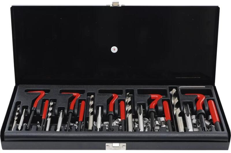 Megszakadt menetek felfúrására és javítására szolgáló menetjavító készlet M5 és M12 menetméret közötti menetekhez. A készletben mindent megtalál, ami a menet javításához szükséges a felfúrástól az új menet kialakításáig. Specifikáció Fémtáskában Lehetővé teszi a menetes furatok javítását Csökkenti az idő- és a költségráfordítást Bruttó súly: 1900 g