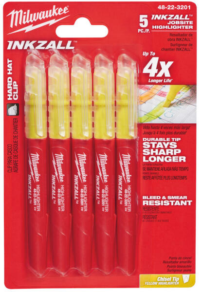 Tartós hegy, hosszabb ideig marad hegyes. Nem kenődik, nem üt át. Nem mérgező tinta, ASTM D 4236 minősítés. Ideális építészeti rajzokhoz, címkékhez, irodai papírokhoz. Anti-roll kialakítás a jobb tapadás érdekében sima felületeken. Csipesz: az INKZALL szövegkiemelő építőipari sisakra, nadrágra, overállra csíptethető. Nyakba akasztó, pl. , hogy az INKZALL szövegkiem