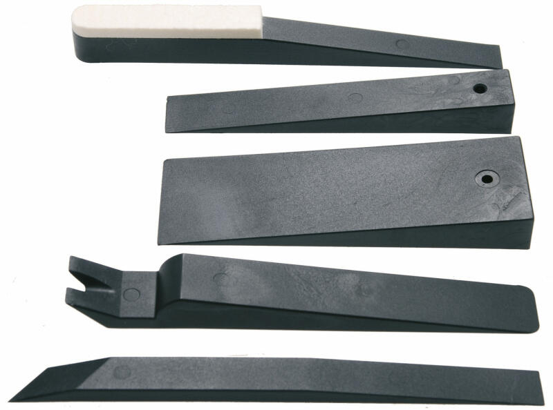 5 részes készlet speciális, kemény műanyag/nylon keverék anyagból. Használható az autó belső burkolatán, takarópanelén, műszerfalán, díszléceken való munkálatoknál. Súly: 530 g