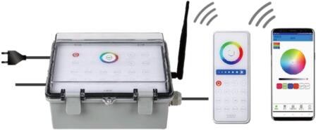 LED vezérlő Wi-Fi-vel, HJ01, 300W Olyan több csatornán működő vezérlő egység, amely távirányítóval és WIFI kapcsolaton keresztül telefonos alkalmazással is programozható és vezérelhető. A medencevilágítás paraméterei otthonának bármely pontjáról szabadon beállíthatóak az ön által kedvelt eszközről. MŰSZAKI INFORMÁCIÓKHálózat: AC 110~250V; Kimenő feszülts