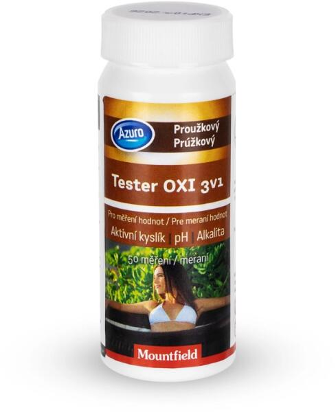Mountfield Azuro OXI 3V1 W&SPA indikátoros medence vízelemző Használatával könnyedén meghatározhatjuk a medence vizének aktív oxigén, a pH és a teljes lúgosság értékeit 1. Merítsen a medence vizébe 15 másodpercig. 2. 15 másodperc után emelje ki, majd az elszíneződött tesztcsíkot hasonlítsa össze a tégelyen található színskálával. 3. Olvassa le a színskálán t
