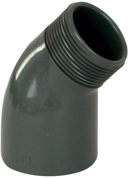 PVC idom - könyök 45°; csatlakozás - ragasztás x külső menet, szín szürke