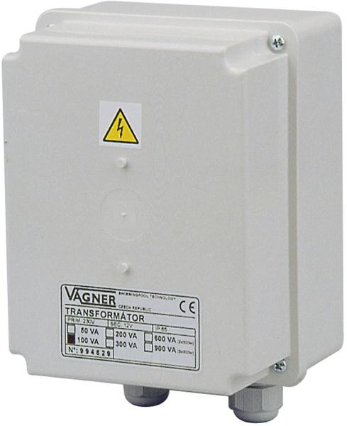 Biztonsági transzformátor 100 W, 230 V bemenettel, 12 V-os kimenettel a medence halogén és LED lámpáihoz.