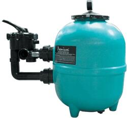 Gemas Premium Oldalszelepes szűrőtartály . A homokszűrő tartály segíti a medencében levő víz tisztán tartását. A keringtető szivattyú a medence vizét átnyomja a szűrőben levő kvarchomokon, ezáltal a medence vize tiszta és átlátszó marad. Minden típusú kisméretű medencéhez. 6-utas OLDAL váltószelepes. Ø 400 mm - 6,3 m3/hA felső diffúzor biztosítja a ví