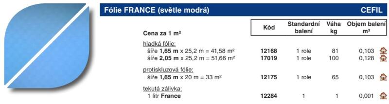 A halványkék 1,5 mm vastagságú medencefóliát új kül- és beltéri medencék építésénél és régebbi medencék rekonstrukciójánál használják.