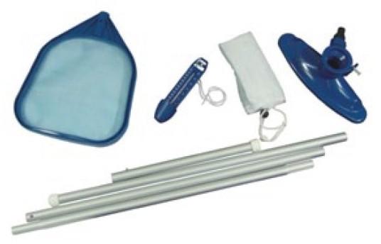 Gyártó: Pontaqua Modell: Medence porszívó szett leszedőhálóval, hőmérővel (FFH 051) Leírás: Kis kerti medencék egyszerű takarító eszköze. A fej egyik csonkjára csatlakoztatott locsolótömlőn keresztül beáramló víz örvényt kelt, és a medence alján összegyűlt szennyeződést besodorja a másik csonkra kötött zsákba. Leszedőhálóval a medencébe hulló úszó szenny
